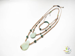 סט 2 שרשראות וצמיד . קריסופארס , אמזונייט ומלכית . חרוזי כסף אמיתי 925